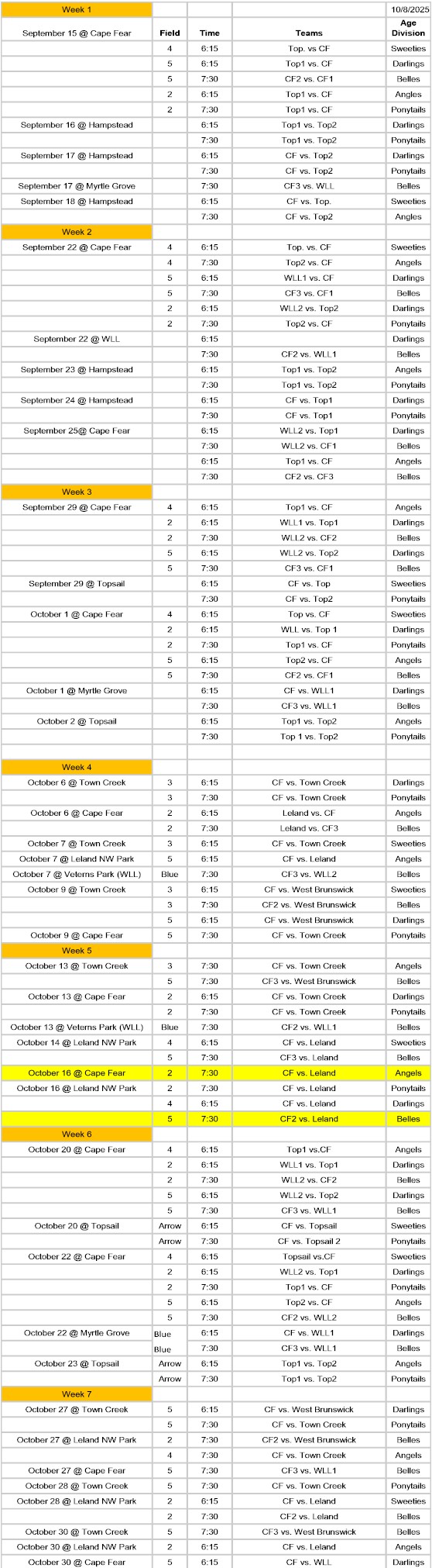 New Hanover, Brunswick, Pender, Onslow, Duplin, & Columbus Counties are playing this year.
